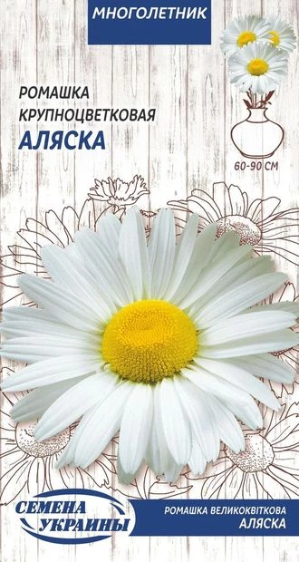 Багаторічна рослина висотою 50-90см. Суцвіття великі, діаметром 8-12см, з білосніжними пелюстками і жовтою серединою. Вирощують посівом насіння у відкритий грунт на початку літа або під зиму. Цвіте на наступний рік з червня по вересень. На одному місці без розподілу й пересадження росте 3-4 роки. Використовується для створення букетів та оформлення садових клумб. Вага нетто: 5 г