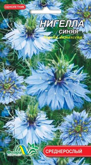 Нигелла - однорічна рослина заввишки 30-50 см, що сильно-галузиться від основи стебла, з ажурним листям вишуканої форми. Квітки досить оригінальні, оточені ажурним зеленим покривалом з верхнього пір'ясто-розітнутого листя, прості або махрові, синього і блакитного кольорів і відтінків. Цвіте з кінця червня по серпень. Услід за квітками на втечах з'являються не менш декоративні роздуті плоди. Холодостійка, світлолюбна і посухостійка. Використовують в мавританських газонах, групових посадках, бордюрах, зрізанні. Насінні коробочки широко застосовують для оформлення зимових букетів. Сіють в травні у відкритий грунт на постійне місце, можна висівати і під зиму. Відстань між рослинами 15-20 см Рослини не люблять пересадку. Віддає перевагу сонячному місцю розташування, легким, поживним грунтам з великим змістом ізвесті.