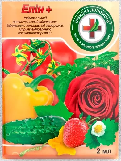 Эпин - стимулятор зростання, яке посилює зростання рослин, збільшує опорну здатність рослин до несприятливих чинників довкілля, відновлює обмінні процеси і синтез речовин після стресових явищ, підвищує імунітет і збільшує врожайність. Препарат створений на основі епибрассинолида - природного рослинного фітогормона. Призначення: застосовується для прискорення проростання насіння, вкорінення черешків, живців, посилення зростання і розвитку рослин.