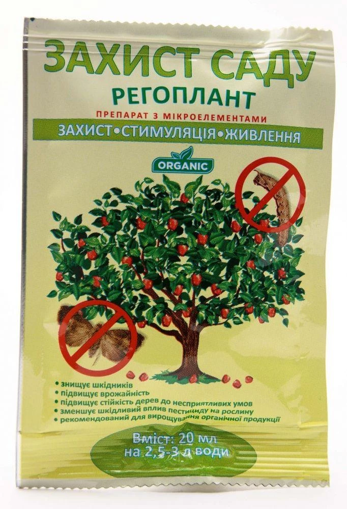 Регоплант Захист саду - новітній захисно-стимулюючий препарат, що активізує імунну систему рослин та запобігає появі та розвитку хвороб.
