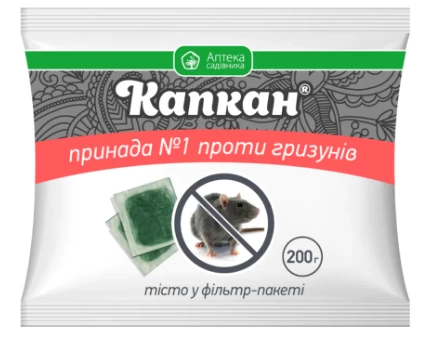 Капкан тістоподібна принада - готова принада у вигляді отруйної суміші насіння культурних рослин для знищення мишовидних гризунів у житлових, промислових та нежилих приміщеннях, а також на сільскогосподарських угіддях та на присадибних ділянках.