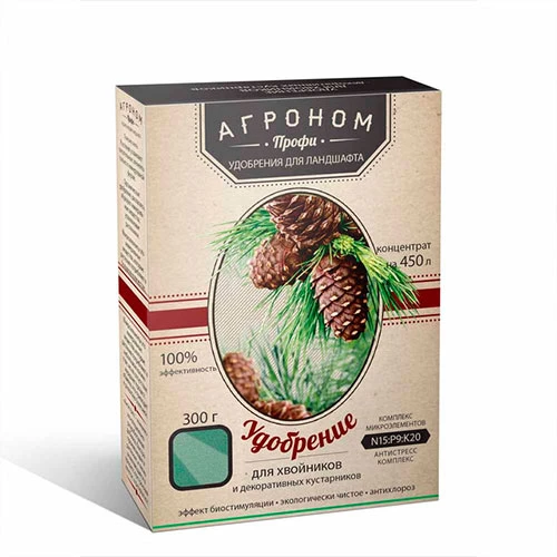 Являє собою ідеальне добриво, що дає кращий результат: сприяє швидкому, здоровому і гармонійному розвитку рослини, збільшує кількість і покращує колір хвої, роблячи його більш насиченим за рахунок високого вмісту мікроелементів, підвищує стійкість дерев до захворювань і несприятливих погодних умов; зміцнює кореневу систему рослин, ефективне і просте в застосуванні.