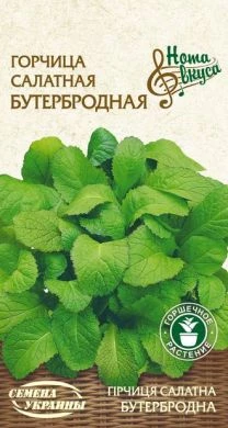 Скороспелый сорт. Период от всходов до сбора зелени 20-30 дней. Листья среднего размера, сочные с приятным горчичным вкусом, желто-зеленой окраски. Сбор зелени проводится при достижении растениями высоты 10-15см.