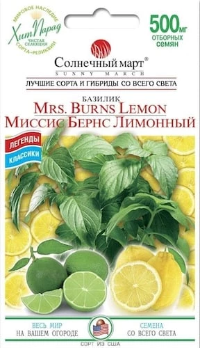 Семена Базилик Миссис Бернс Лимонный, 0.5 г, ТМ Солнечный Март