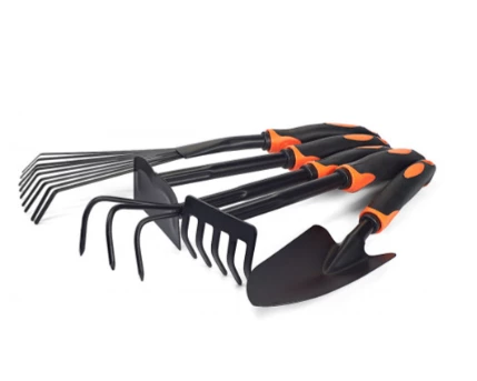 Призначений для садових робіт. Виготовлений з високоякісної вуглецевої ста- лі та має ергономічне двокомпонентне руків’я, що добре лягає в долоню. До складу входять лопатка, вилка посадкова, граблі, культиватор та мотига