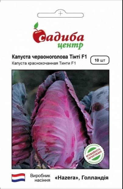 Тінті F1 - це середньостиглий гібрид конічної капусти, у якої період вегетації триває три місяці (75 - 90 днів). Головки щільні, яскраво-червоного забарвлення, масою 0,5-2,5 кілограм. Цей гібрид призначений для споживання у свіжому вигляді і для реалізації.
